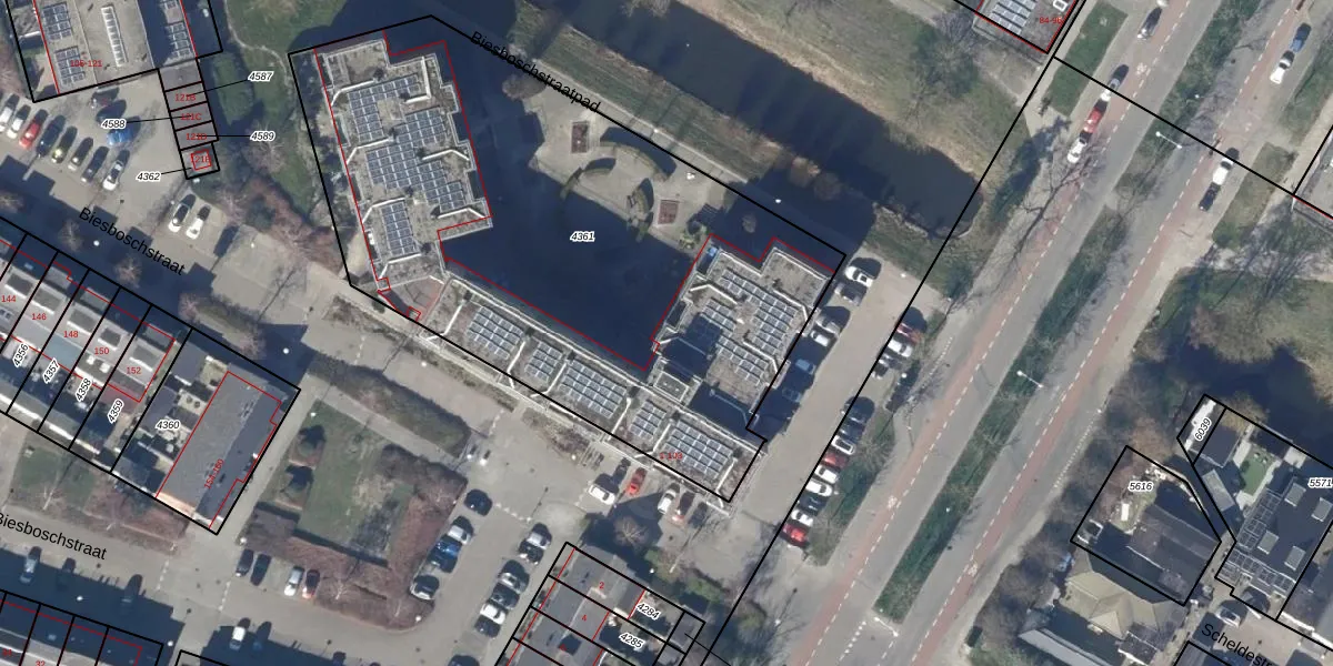 Het perceel waarop Biesboschstraat 83 staat heeft een oppervlakte van 3177 m². Dit is een zeer groot perceel. De perceeloppervlakte wordt geregistreerd door het Kadaster. Gedetailleerde informatie over de maten van dit perceel kunt u vinden in het rapport Kadastrale kaart met maatvoering van Biesboschstraat 83.
