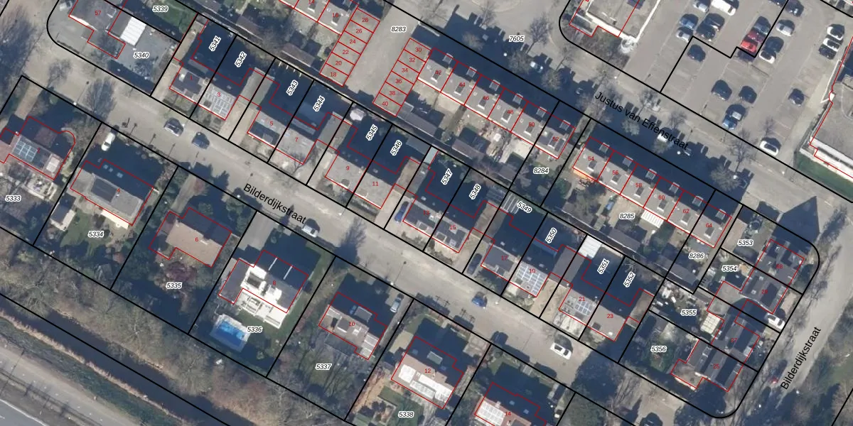 Gebruik de zoekbalk of klik op een perceel voor informatie over de adressen binnen dit perceel.