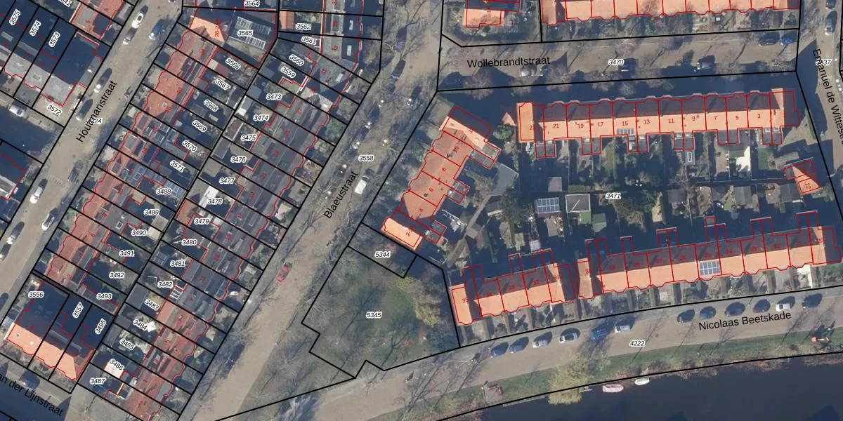 Het perceel waarop Blaeustraat 4 staat heeft een oppervlakte van 5520 m². Dit is een zeer groot perceel. De perceeloppervlakte wordt geregistreerd door het Kadaster. Gedetailleerde informatie over de maten van dit perceel kunt u vinden in het rapport Kadastrale kaart met maatvoering van Blaeustraat 4.