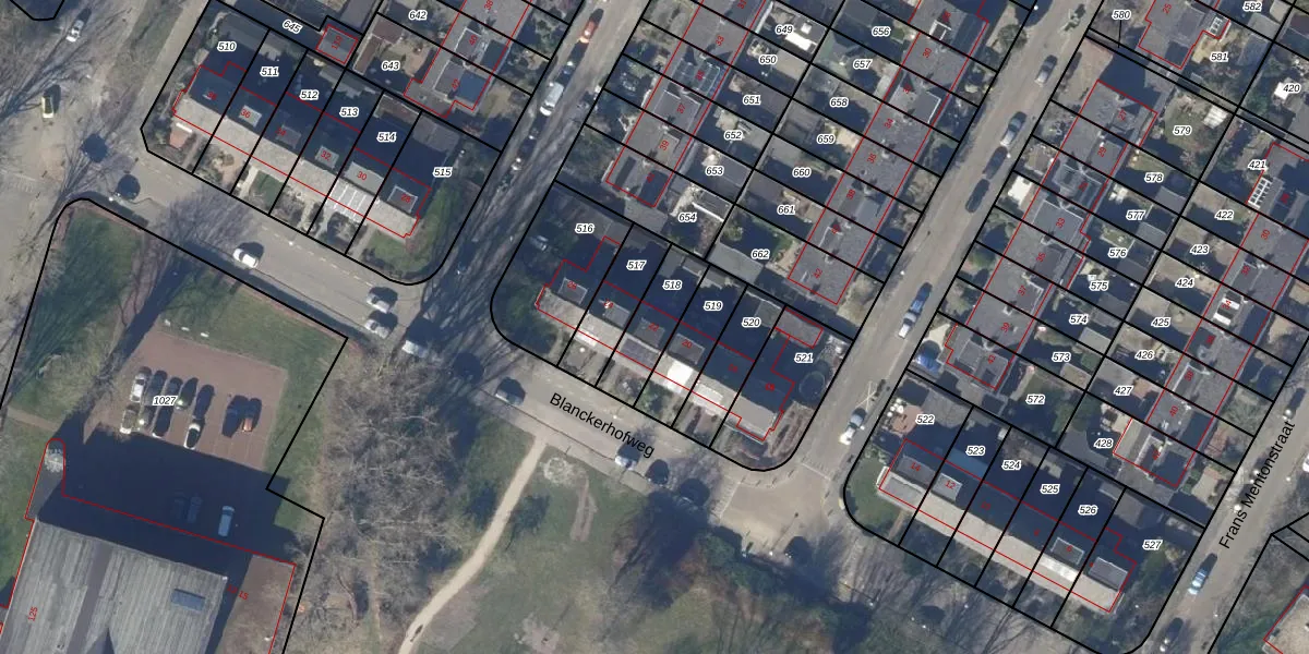 Het perceel waarop Blanckerhofweg 22 staat heeft een oppervlakte van 166 m². Dit is een middelgroot perceel. De perceeloppervlakte wordt geregistreerd door het Kadaster. Gedetailleerde informatie over de maten van dit perceel kunt u vinden in het rapport Kadastrale kaart met maatvoering van Blanckerhofweg 22.