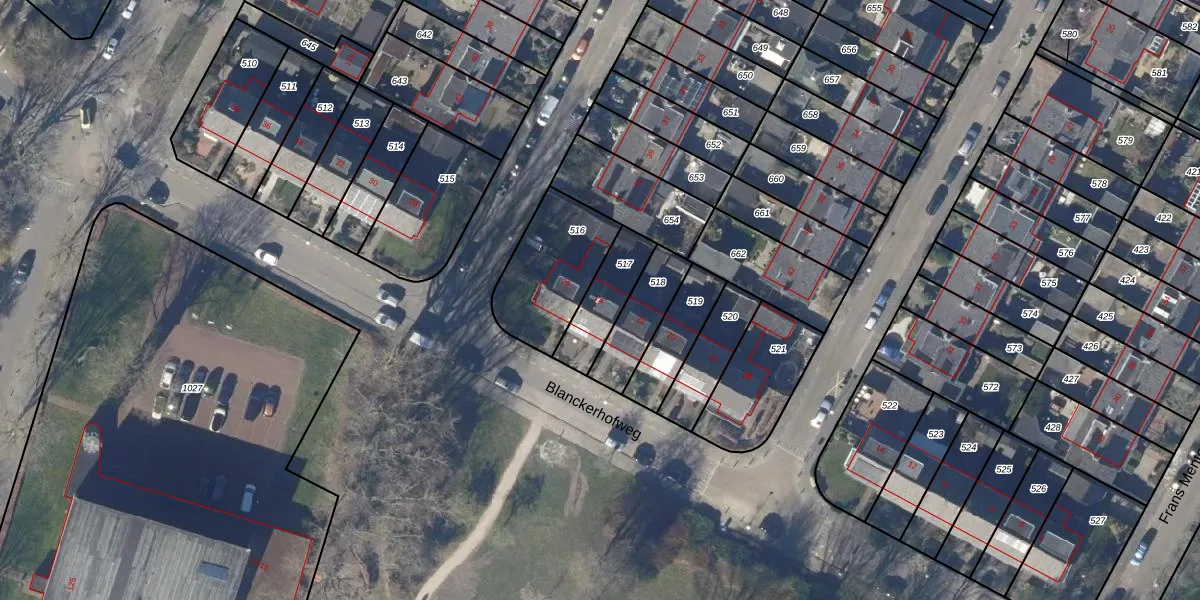 Het perceel waarop Blanckerhofweg 24 staat heeft een oppervlakte van 165 m². Dit is een middelgroot perceel. De perceeloppervlakte wordt geregistreerd door het Kadaster. Gedetailleerde informatie over de maten van dit perceel kunt u vinden in het rapport Kadastrale kaart met maatvoering van Blanckerhofweg 24.