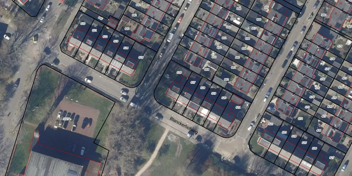 Het perceel waarop Blanckerhofweg 26 staat heeft een oppervlakte van 336 m². Dit is een groot perceel. De perceeloppervlakte wordt geregistreerd door het Kadaster. Gedetailleerde informatie over de maten van dit perceel kunt u vinden in het rapport Kadastrale kaart met maatvoering van Blanckerhofweg 26.