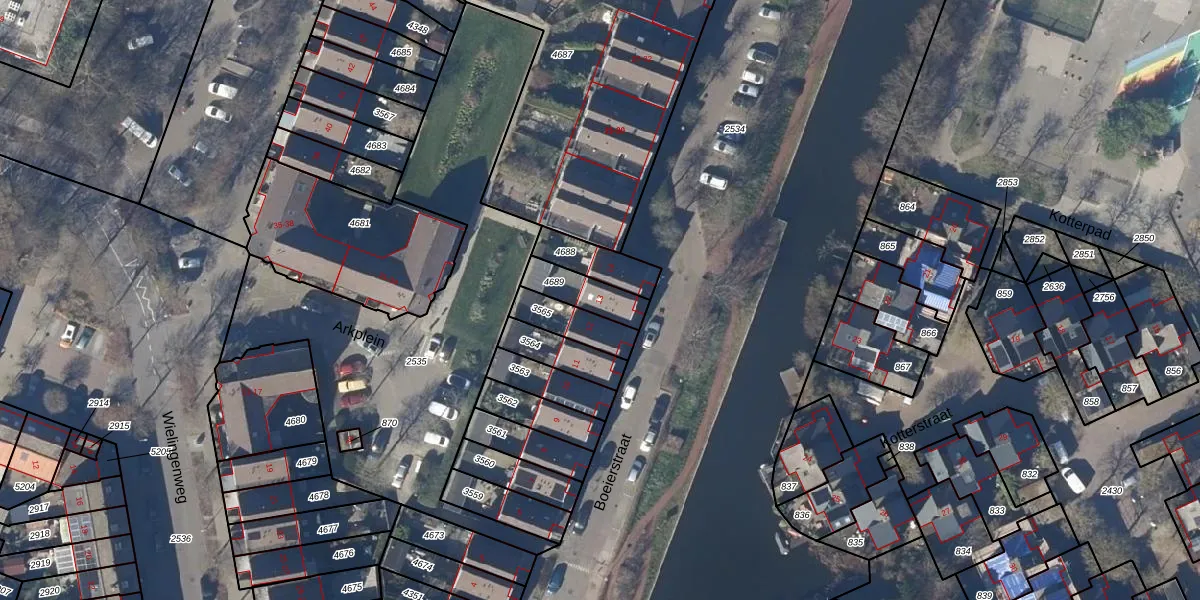 Gebruik de zoekbalk of klik op een perceel voor informatie over de adressen binnen dit perceel.