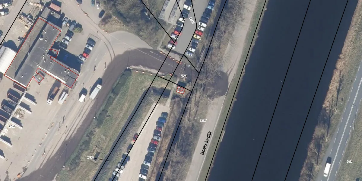 Het perceel waarop Boekelerdijk 13-A staat heeft een oppervlakte van 7540 m². Dit is een zeer groot perceel. De perceeloppervlakte wordt geregistreerd door het Kadaster. Gedetailleerde informatie over de maten van dit perceel kunt u vinden in het rapport Kadastrale kaart met maatvoering van Boekelerdijk 13-A.