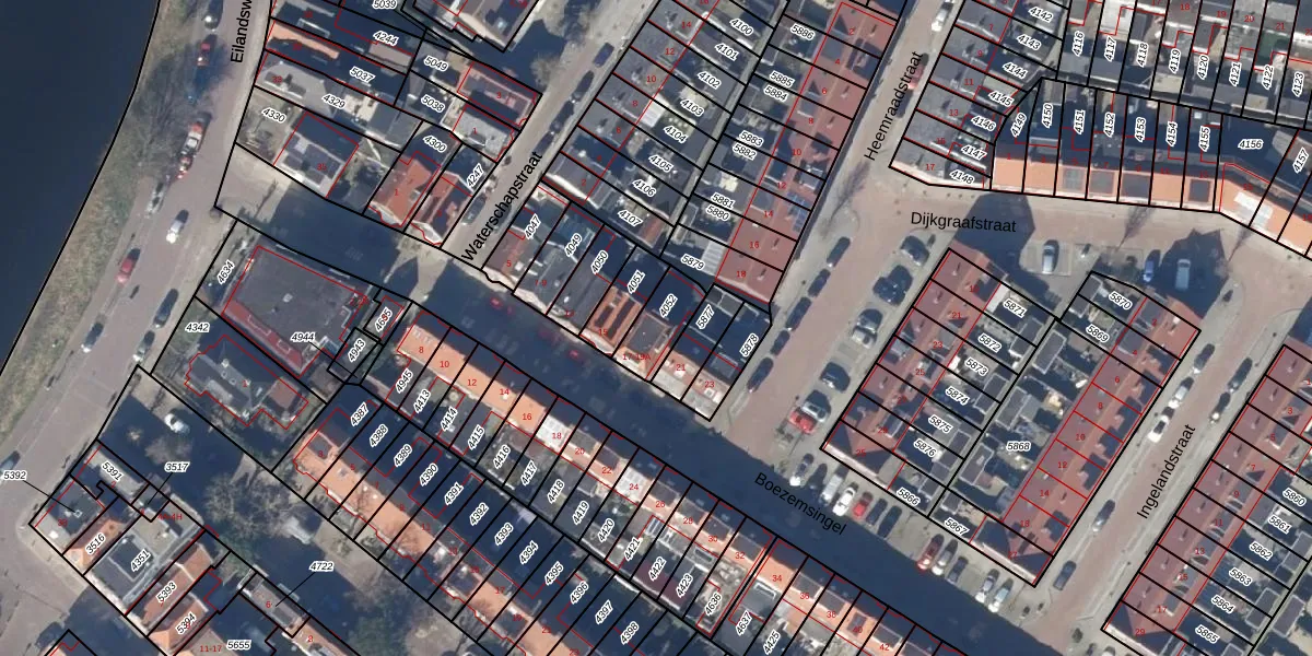 Het perceel waarop Boezemsingel 19 staat heeft een oppervlakte van 117 m². Dit is een middelgroot perceel. De perceeloppervlakte wordt geregistreerd door het Kadaster. Gedetailleerde informatie over de maten van dit perceel kunt u vinden in het rapport Kadastrale kaart met maatvoering van Boezemsingel 19.