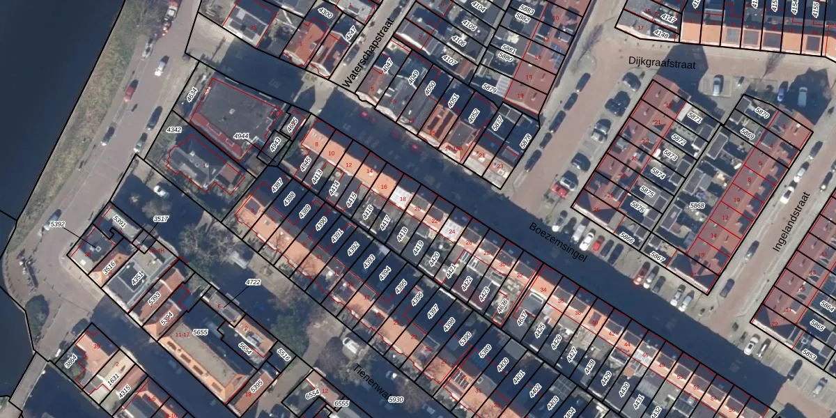 Het perceel waarop Boezemsingel 20 staat heeft een oppervlakte van 85 m². Dit is een klein perceel. De perceeloppervlakte wordt geregistreerd door het Kadaster. Gedetailleerde informatie over de maten van dit perceel kunt u vinden in het rapport Kadastrale kaart met maatvoering van Boezemsingel 20.