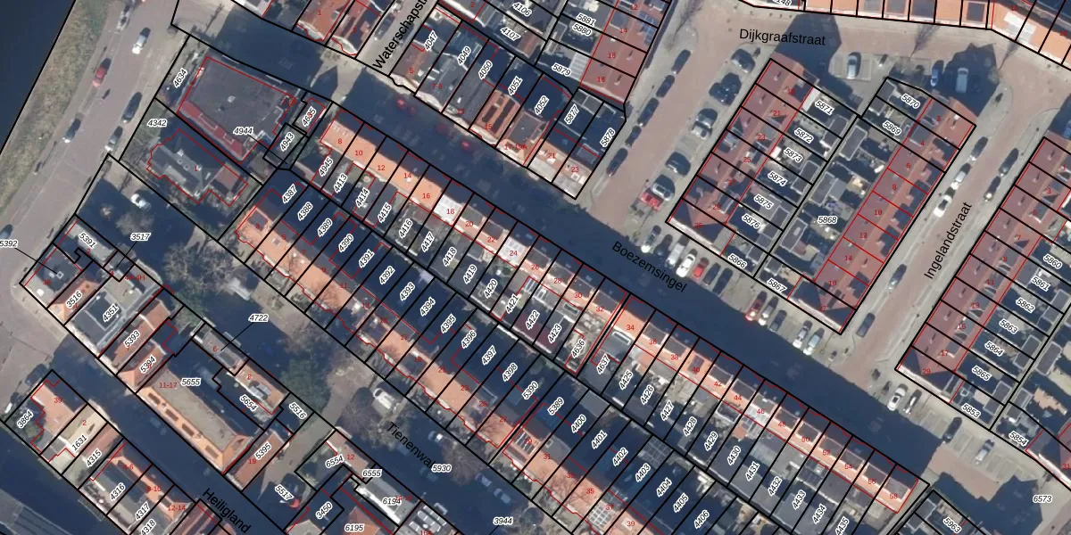 Het perceel waarop Boezemsingel 26 staat heeft een oppervlakte van 89 m². Dit is een klein perceel. De perceeloppervlakte wordt geregistreerd door het Kadaster. Gedetailleerde informatie over de maten van dit perceel kunt u vinden in het rapport Kadastrale kaart met maatvoering van Boezemsingel 26.