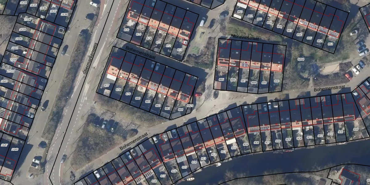 Het perceel waarop Bohemenstraat 15 staat heeft een oppervlakte van 176 m². Dit is een middelgroot perceel. De perceeloppervlakte wordt geregistreerd door het Kadaster. Gedetailleerde informatie over de maten van dit perceel kunt u vinden in het rapport Kadastrale kaart met maatvoering van Bohemenstraat 15.