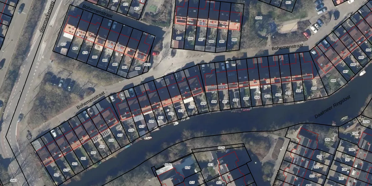 Het perceel waarop Bohemenstraat 30 staat heeft een oppervlakte van 142 m². Dit is een middelgroot perceel. De perceeloppervlakte wordt geregistreerd door het Kadaster. Gedetailleerde informatie over de maten van dit perceel kunt u vinden in het rapport Kadastrale kaart met maatvoering van Bohemenstraat 30.