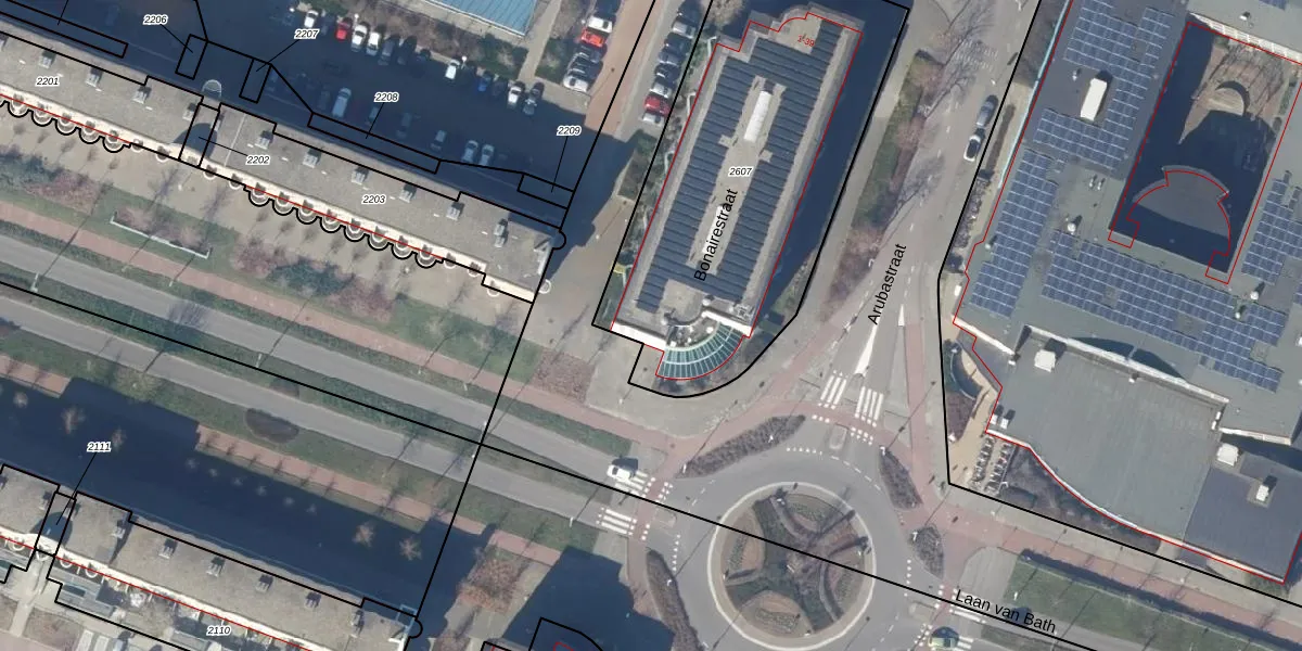 Het perceel waarop Bonairestraat 15 staat heeft een oppervlakte van 1870 m². Dit is een zeer groot perceel. De perceeloppervlakte wordt geregistreerd door het Kadaster. Gedetailleerde informatie over de maten van dit perceel kunt u vinden in het rapport Kadastrale kaart met maatvoering van Bonairestraat 15.