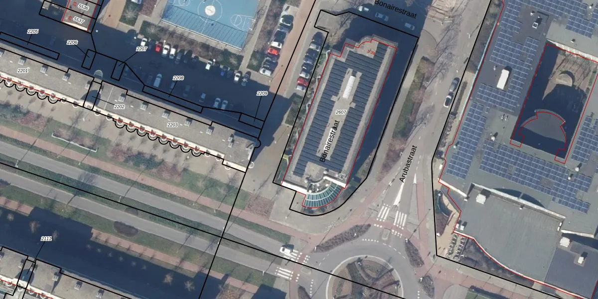 Het perceel waarop Bonairestraat 36 staat heeft een oppervlakte van 1870 m². Dit is een zeer groot perceel. De perceeloppervlakte wordt geregistreerd door het Kadaster. Gedetailleerde informatie over de maten van dit perceel kunt u vinden in het rapport Kadastrale kaart met maatvoering van Bonairestraat 36.