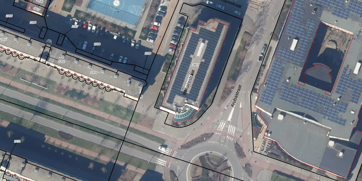 Het perceel waarop Bonairestraat 6 staat heeft een oppervlakte van 1870 m². Dit is een zeer groot perceel. De perceeloppervlakte wordt geregistreerd door het Kadaster. Gedetailleerde informatie over de maten van dit perceel kunt u vinden in het rapport Kadastrale kaart met maatvoering van Bonairestraat 6.
