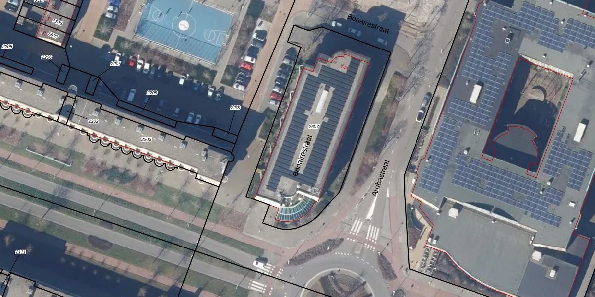 Het perceel waarop Bonairestraat 7 staat heeft een oppervlakte van 1870 m². Dit is een zeer groot perceel. De perceeloppervlakte wordt geregistreerd door het Kadaster. Gedetailleerde informatie over de maten van dit perceel kunt u vinden in het rapport Kadastrale kaart met maatvoering van Bonairestraat 7.