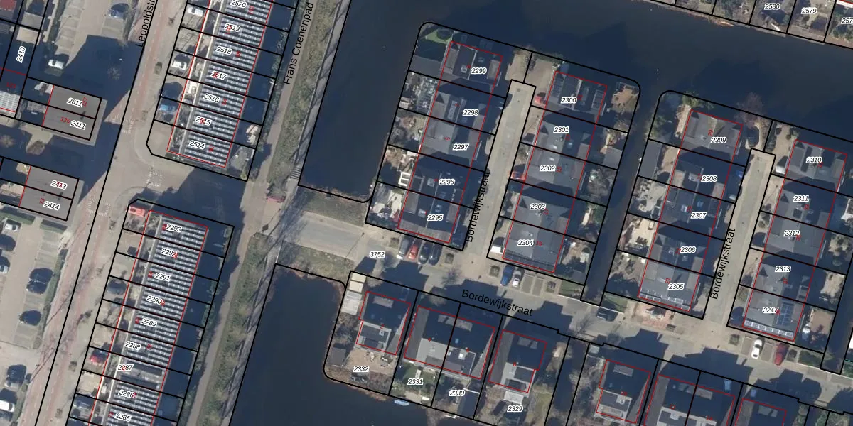 Het perceel waarop Bordewijkstraat 1 staat heeft een oppervlakte van 242 m². Dit is een middelgroot perceel. De perceeloppervlakte wordt geregistreerd door het Kadaster. Gedetailleerde informatie over de maten van dit perceel kunt u vinden in het rapport Kadastrale kaart met maatvoering van Bordewijkstraat 1.