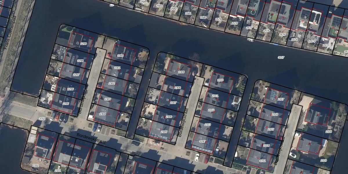 Gebruik de zoekbalk of klik op een perceel voor informatie over de adressen binnen dit perceel.