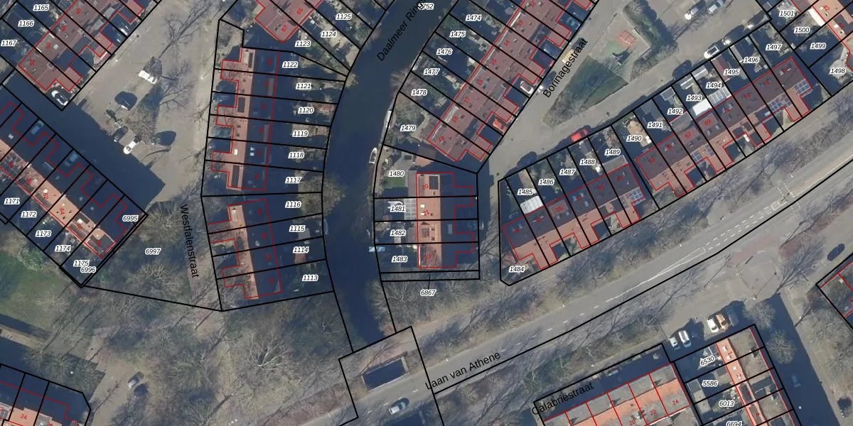 Gebruik de zoekbalk of klik op een perceel voor informatie over de adressen binnen dit perceel.