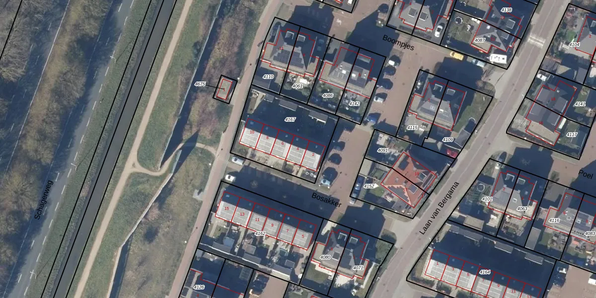 Het perceel waarop Bosakker 4 staat heeft een oppervlakte van 740 m². Dit is een groot perceel. De perceeloppervlakte wordt geregistreerd door het Kadaster. Gedetailleerde informatie over de maten van dit perceel kunt u vinden in het rapport Kadastrale kaart met maatvoering van Bosakker 4.