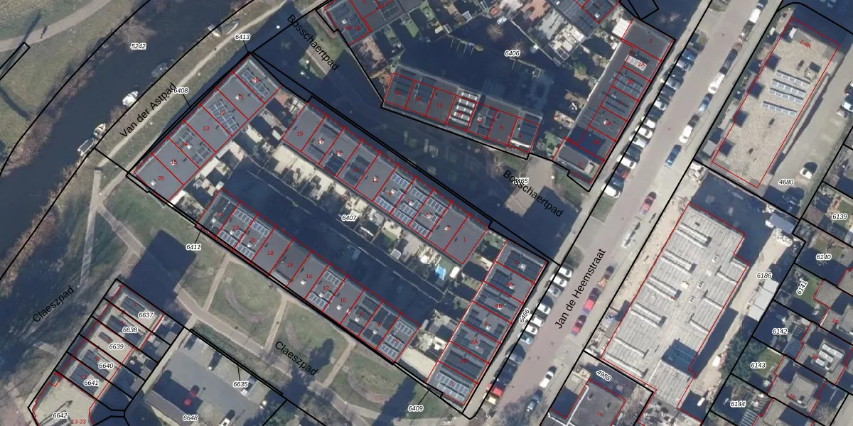 Het perceel waarop Bosschaertpad 5 staat heeft een oppervlakte van 3630 m². Dit is een zeer groot perceel. De perceeloppervlakte wordt geregistreerd door het Kadaster. Gedetailleerde informatie over de maten van dit perceel kunt u vinden in het rapport Kadastrale kaart met maatvoering van Bosschaertpad 5.