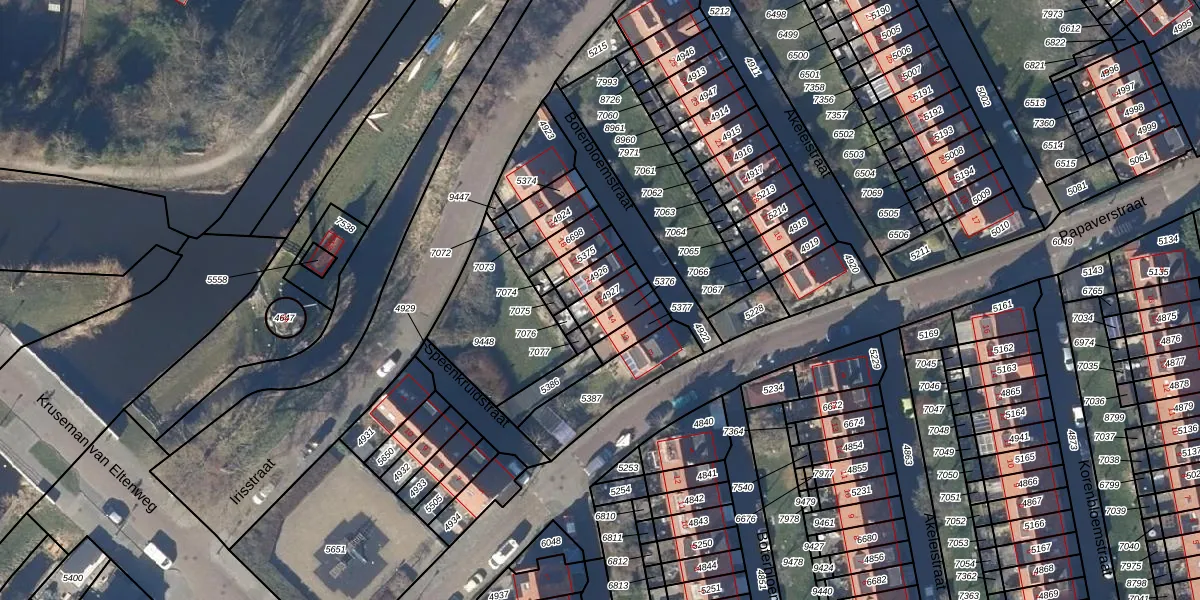 Gebruik de zoekbalk of klik op een perceel voor informatie over de adressen binnen dit perceel.