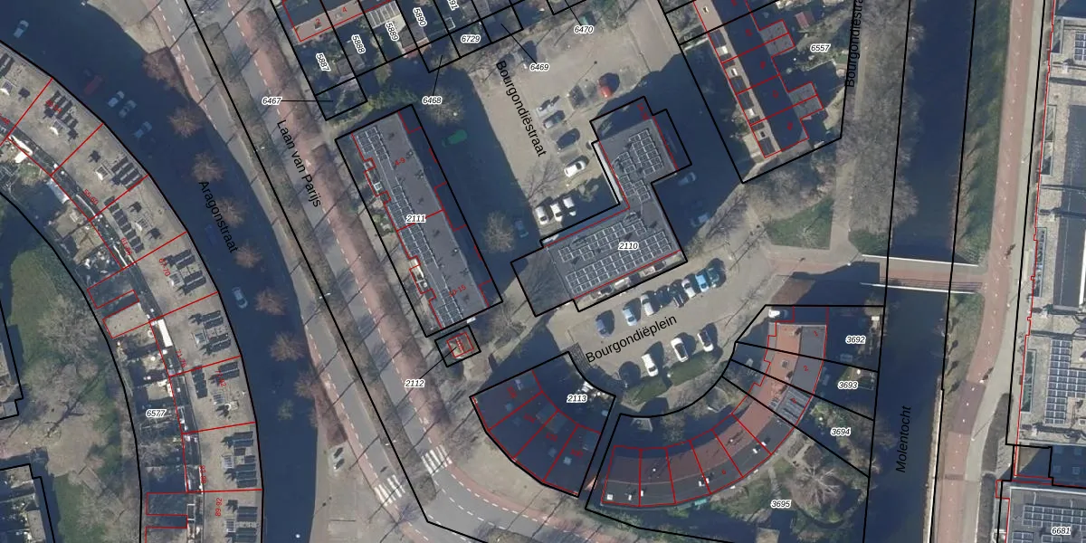 Het perceel waarop Bourgondiëstraat 22 staat heeft een oppervlakte van 629 m². Dit is een groot perceel. De perceeloppervlakte wordt geregistreerd door het Kadaster. Gedetailleerde informatie over de maten van dit perceel kunt u vinden in het rapport Kadastrale kaart met maatvoering van Bourgondiëstraat 22.