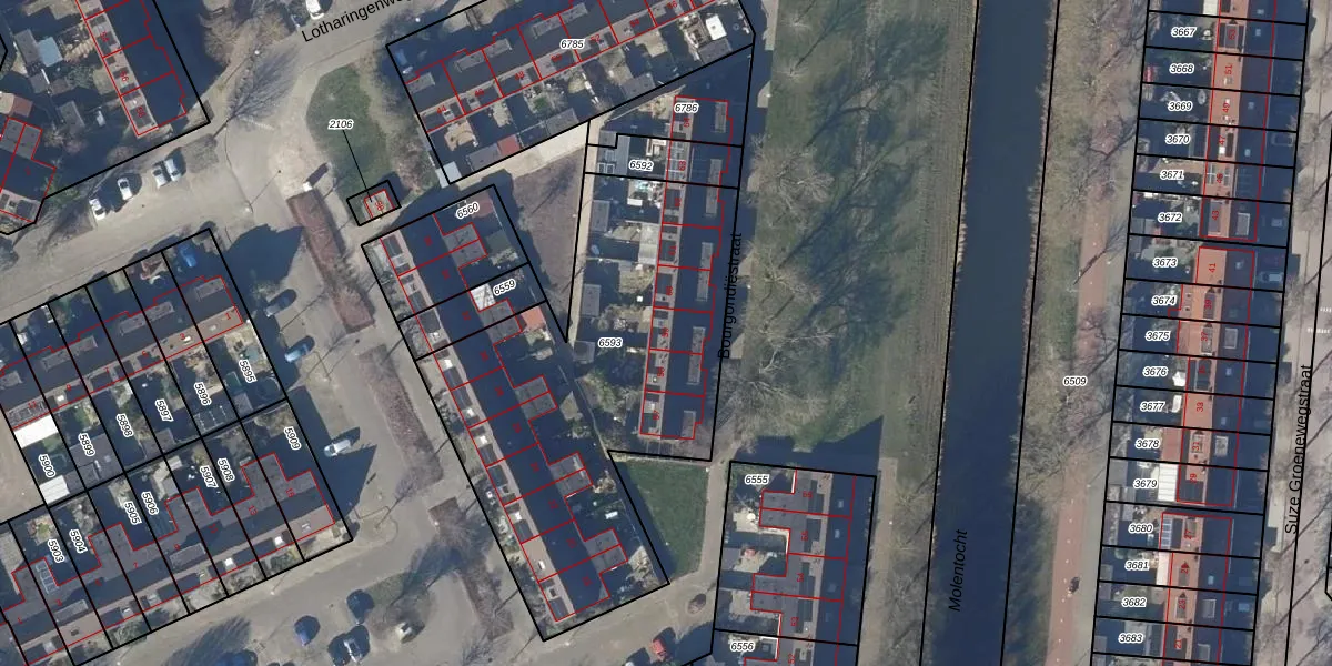 Het perceel waarop Bourgondiëstraat 59 staat heeft een oppervlakte van 1878 m². Dit is een zeer groot perceel. De perceeloppervlakte wordt geregistreerd door het Kadaster. Gedetailleerde informatie over de maten van dit perceel kunt u vinden in het rapport Kadastrale kaart met maatvoering van Bourgondiëstraat 59.