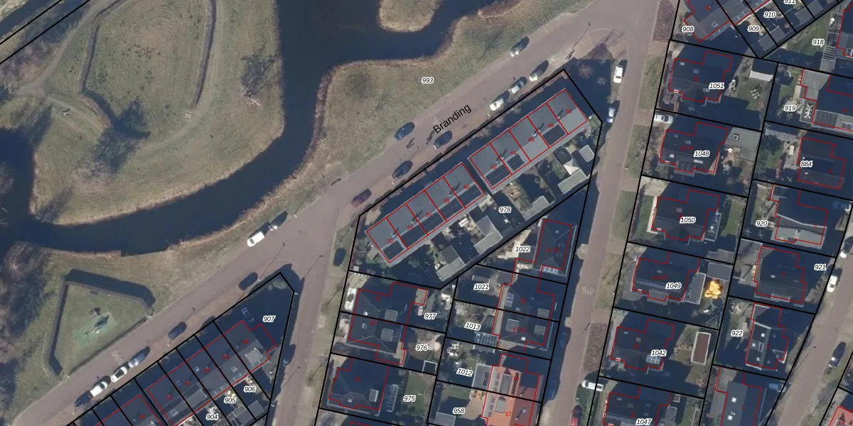 Het perceel waarop Branding 36 staat heeft een oppervlakte van 1500 m². Dit is een zeer groot perceel. De perceeloppervlakte wordt geregistreerd door het Kadaster. Gedetailleerde informatie over de maten van dit perceel kunt u vinden in het rapport Kadastrale kaart met maatvoering van Branding 36.