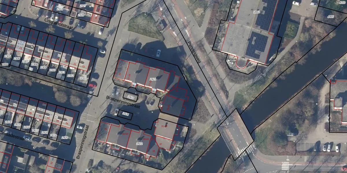 Het perceel waarop Braspenningstraat 23 staat heeft een oppervlakte van 1040 m². Dit is een zeer groot perceel. De perceeloppervlakte wordt geregistreerd door het Kadaster. Gedetailleerde informatie over de maten van dit perceel kunt u vinden in het rapport Kadastrale kaart met maatvoering van Braspenningstraat 23.