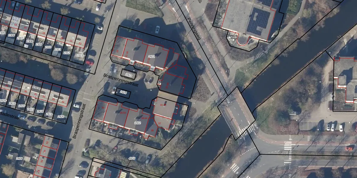 Het perceel waarop Braspenningstraat 30 staat heeft een oppervlakte van 1040 m². Dit is een zeer groot perceel. De perceeloppervlakte wordt geregistreerd door het Kadaster. Gedetailleerde informatie over de maten van dit perceel kunt u vinden in het rapport Kadastrale kaart met maatvoering van Braspenningstraat 30.