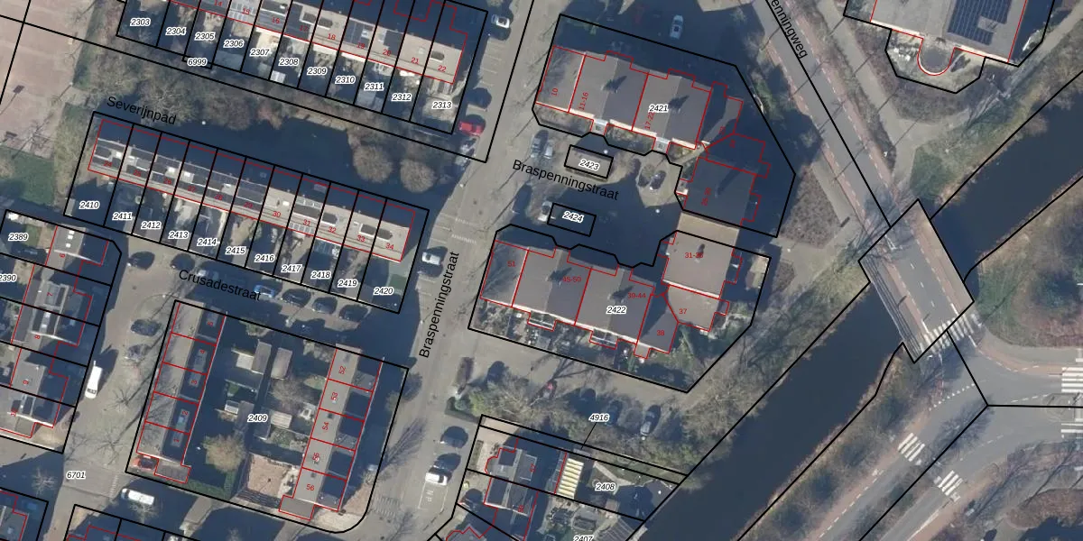 Het perceel waarop Braspenningstraat 46 staat heeft een oppervlakte van 1110 m². Dit is een zeer groot perceel. De perceeloppervlakte wordt geregistreerd door het Kadaster. Gedetailleerde informatie over de maten van dit perceel kunt u vinden in het rapport Kadastrale kaart met maatvoering van Braspenningstraat 46.