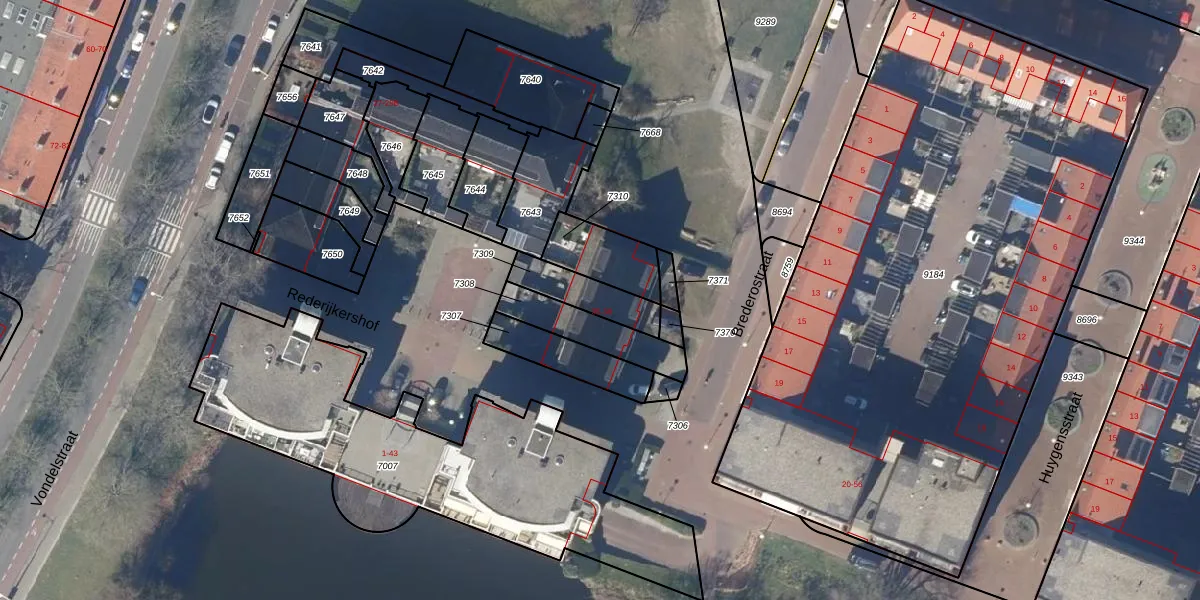 Gebruik de zoekbalk of klik op een perceel voor informatie over de adressen binnen dit perceel.