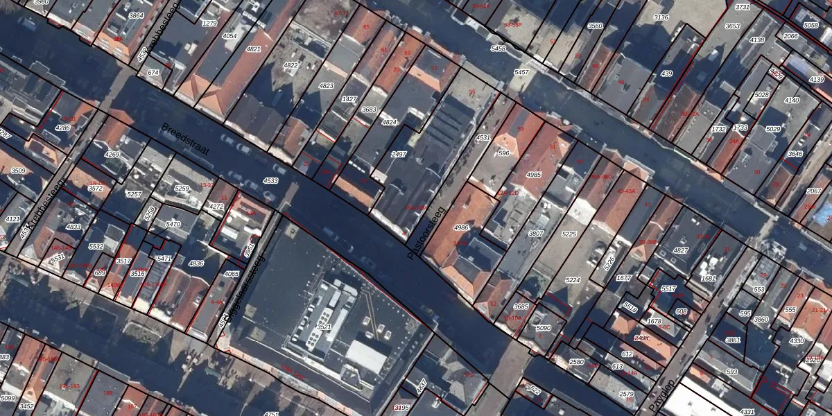 Het perceel waarop Breedstraat 16-A staat heeft een oppervlakte van 542 m². Dit is een groot perceel. De perceeloppervlakte wordt geregistreerd door het Kadaster. Gedetailleerde informatie over de maten van dit perceel kunt u vinden in het rapport Kadastrale kaart met maatvoering van Breedstraat 16-A.