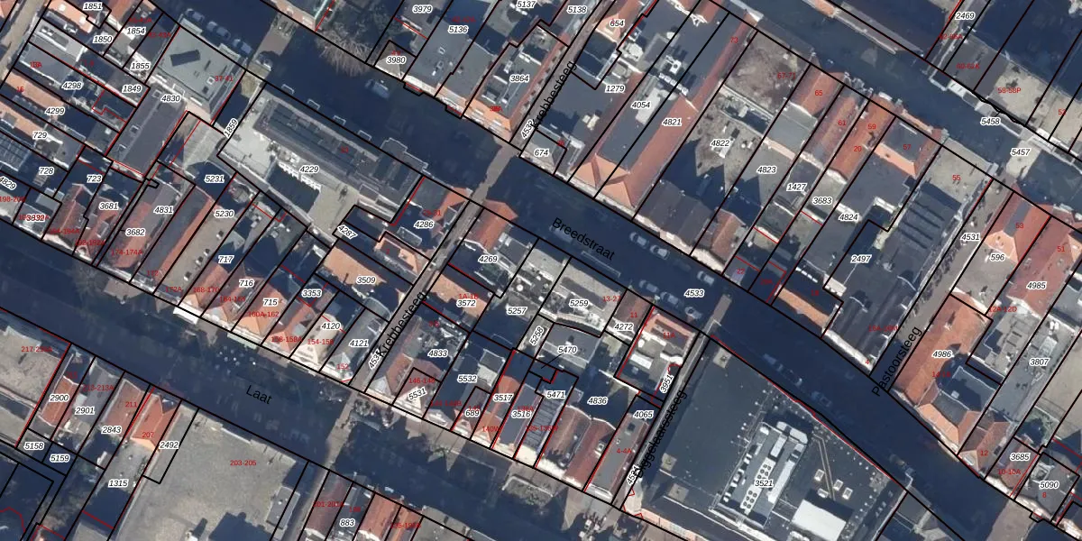 Het perceel waarop Breedstraat 19 staat heeft een oppervlakte van 158 m². Dit is een middelgroot perceel. De perceeloppervlakte wordt geregistreerd door het Kadaster. Gedetailleerde informatie over de maten van dit perceel kunt u vinden in het rapport Kadastrale kaart met maatvoering van Breedstraat 19.