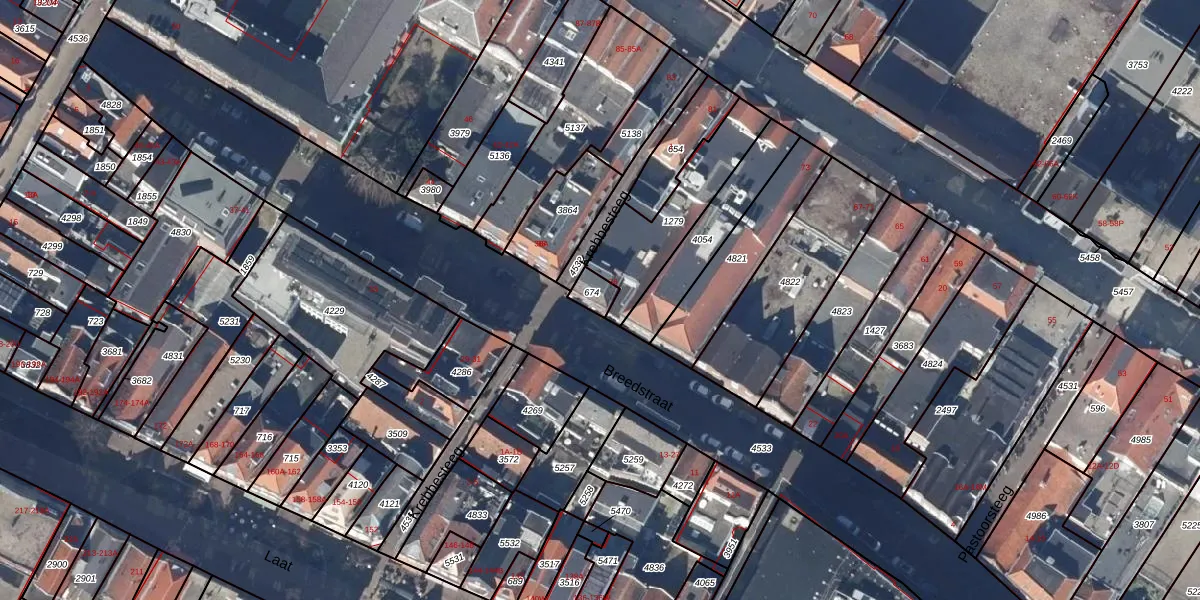 Het perceel waarop Breedstraat 36 staat heeft een oppervlakte van 41 m². Dit is een klein perceel. De perceeloppervlakte wordt geregistreerd door het Kadaster. Gedetailleerde informatie over de maten van dit perceel kunt u vinden in het rapport Kadastrale kaart met maatvoering van Breedstraat 36.