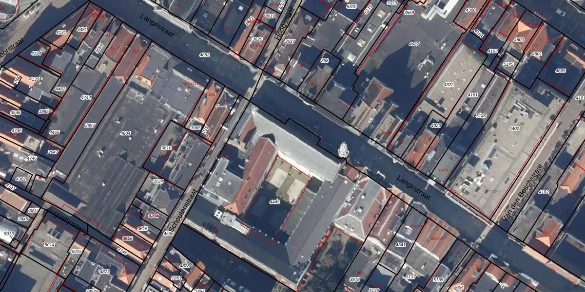 Het perceel waarop Breedstraat 50 staat heeft een oppervlakte van 2740 m². Dit is een zeer groot perceel. De perceeloppervlakte wordt geregistreerd door het Kadaster. Gedetailleerde informatie over de maten van dit perceel kunt u vinden in het rapport Kadastrale kaart met maatvoering van Breedstraat 50.