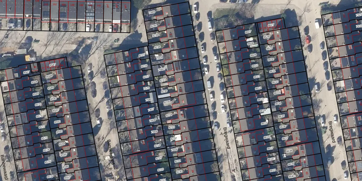 Gebruik de zoekbalk of klik op een perceel voor informatie over de adressen binnen dit perceel.