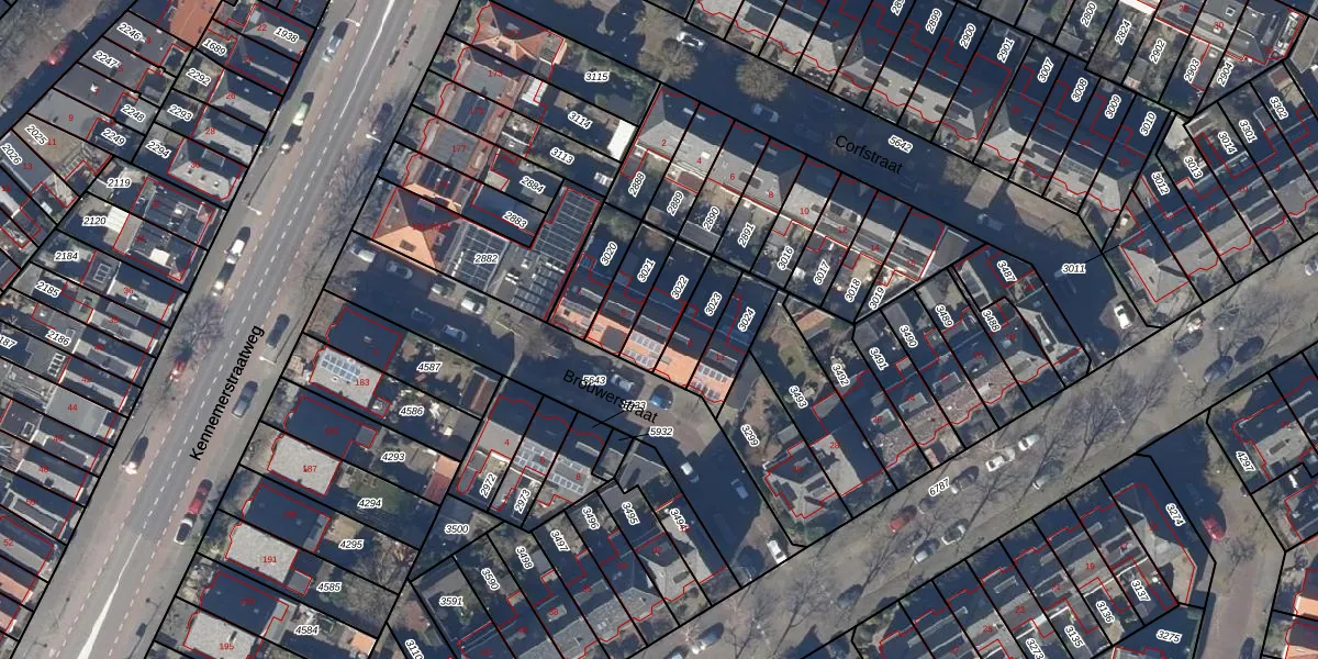Het perceel waarop Brouwerstraat 7 staat heeft een oppervlakte van 115 m². Dit is een middelgroot perceel. De perceeloppervlakte wordt geregistreerd door het Kadaster. Gedetailleerde informatie over de maten van dit perceel kunt u vinden in het rapport Kadastrale kaart met maatvoering van Brouwerstraat 7.