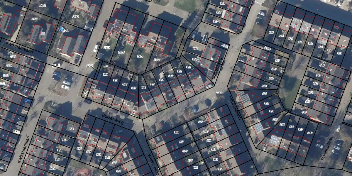 Gebruik de zoekbalk of klik op een perceel voor informatie over de adressen binnen dit perceel.
