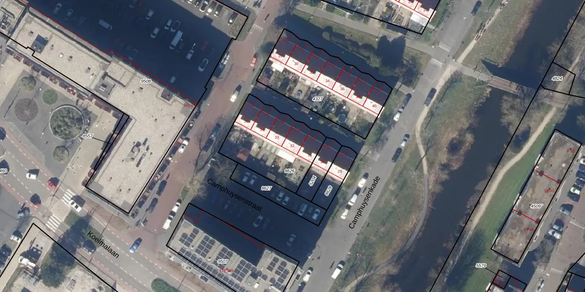 Het perceel waarop Camphuysenkade 32 staat heeft een oppervlakte van 675 m². Dit is een groot perceel. De perceeloppervlakte wordt geregistreerd door het Kadaster. Gedetailleerde informatie over de maten van dit perceel kunt u vinden in het rapport Kadastrale kaart met maatvoering van Camphuysenkade 32.