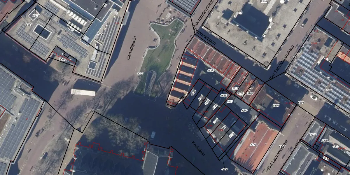 Het perceel waarop Canadaplein 12 staat heeft een oppervlakte van 829 m². Dit is een groot perceel. De perceeloppervlakte wordt geregistreerd door het Kadaster. Gedetailleerde informatie over de maten van dit perceel kunt u vinden in het rapport Kadastrale kaart met maatvoering van Canadaplein 12.