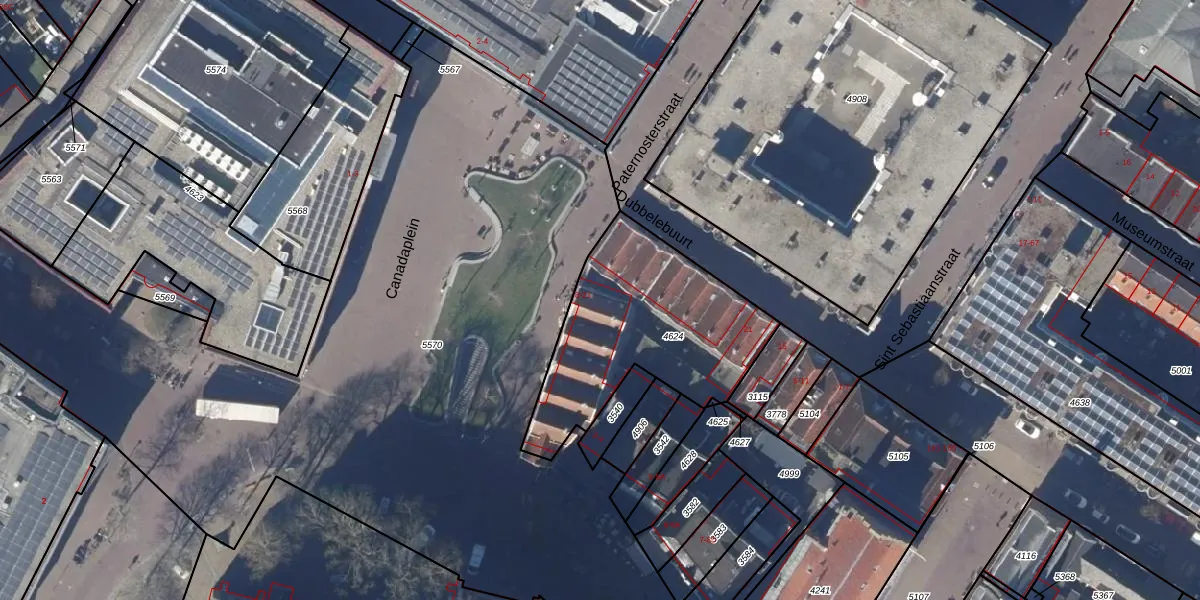 Het perceel waarop Canadaplein 14 staat heeft een oppervlakte van 829 m². Dit is een groot perceel. De perceeloppervlakte wordt geregistreerd door het Kadaster. Gedetailleerde informatie over de maten van dit perceel kunt u vinden in het rapport Kadastrale kaart met maatvoering van Canadaplein 14.
