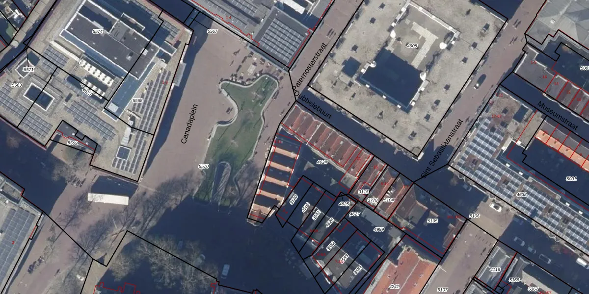Het perceel waarop Canadaplein 17 staat heeft een oppervlakte van 829 m². Dit is een groot perceel. De perceeloppervlakte wordt geregistreerd door het Kadaster. Gedetailleerde informatie over de maten van dit perceel kunt u vinden in het rapport Kadastrale kaart met maatvoering van Canadaplein 17.