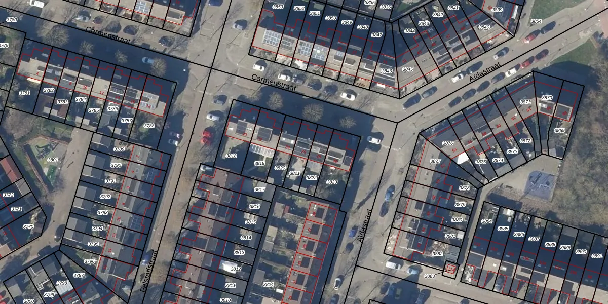 Het perceel waarop Carmenstraat 26 staat heeft een oppervlakte van 126 m². Dit is een middelgroot perceel. De perceeloppervlakte wordt geregistreerd door het Kadaster. Gedetailleerde informatie over de maten van dit perceel kunt u vinden in het rapport Kadastrale kaart met maatvoering van Carmenstraat 26.