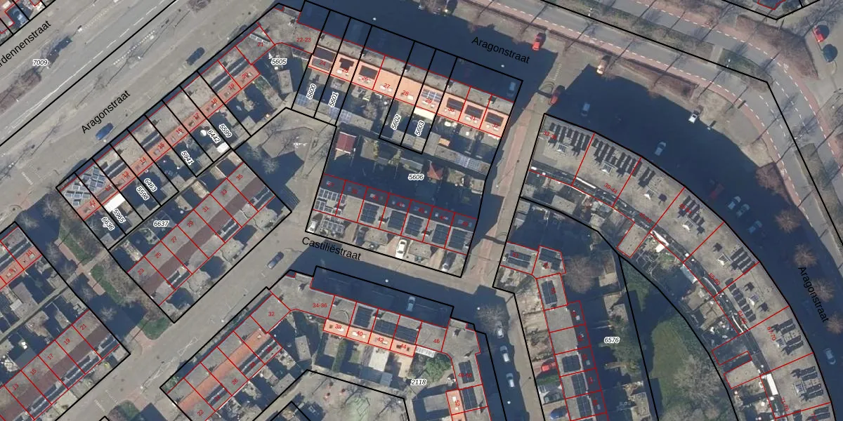 Het perceel waarop Castiliëstraat 45 staat heeft een oppervlakte van 1650 m². Dit is een zeer groot perceel. De perceeloppervlakte wordt geregistreerd door het Kadaster. Gedetailleerde informatie over de maten van dit perceel kunt u vinden in het rapport Kadastrale kaart met maatvoering van Castiliëstraat 45.