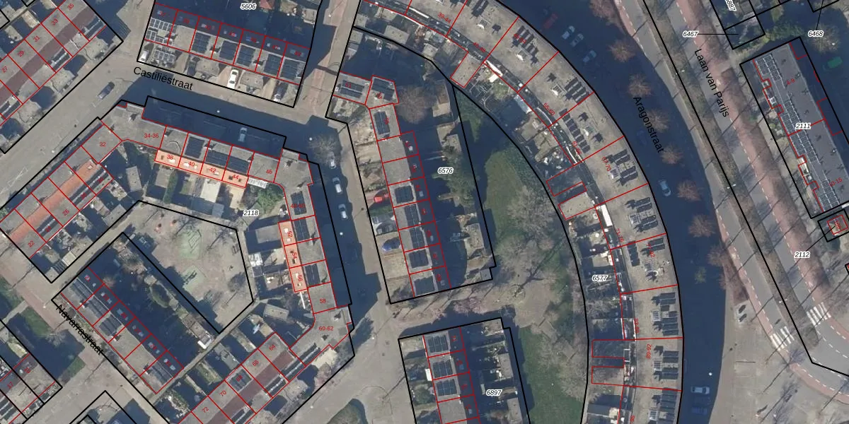 Het perceel waarop Castiliëstraat 63 staat heeft een oppervlakte van 1555 m². Dit is een zeer groot perceel. De perceeloppervlakte wordt geregistreerd door het Kadaster. Gedetailleerde informatie over de maten van dit perceel kunt u vinden in het rapport Kadastrale kaart met maatvoering van Castiliëstraat 63.