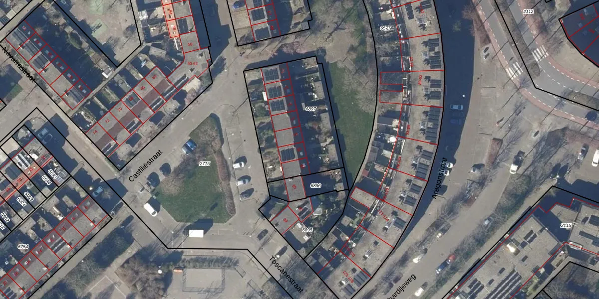 Het perceel waarop Castiliëstraat 81 staat heeft een oppervlakte van 999 m². Dit is een groot perceel. De perceeloppervlakte wordt geregistreerd door het Kadaster. Gedetailleerde informatie over de maten van dit perceel kunt u vinden in het rapport Kadastrale kaart met maatvoering van Castiliëstraat 81.