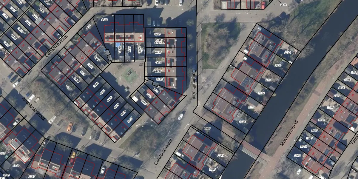 Het perceel waarop Cataloniëstraat 86-A staat heeft een oppervlakte van 155 m². Dit is een middelgroot perceel. De perceeloppervlakte wordt geregistreerd door het Kadaster. Gedetailleerde informatie over de maten van dit perceel kunt u vinden in het rapport Kadastrale kaart met maatvoering van Cataloniëstraat 86-A.