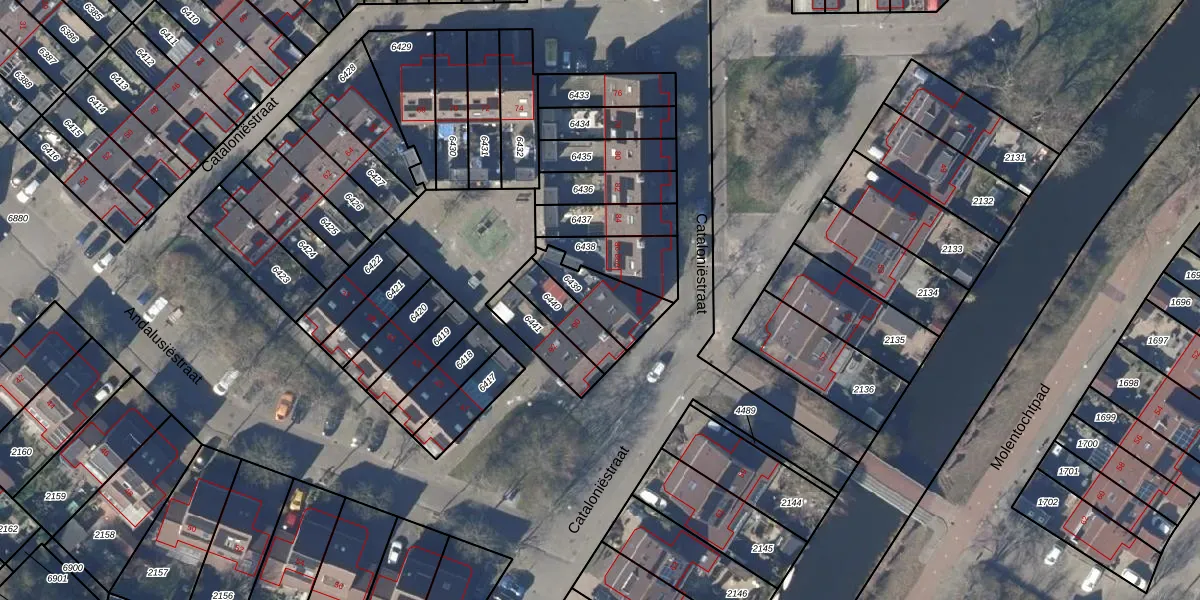 Het perceel waarop Cataloniëstraat 88 staat heeft een oppervlakte van 148 m². Dit is een middelgroot perceel. De perceeloppervlakte wordt geregistreerd door het Kadaster. Gedetailleerde informatie over de maten van dit perceel kunt u vinden in het rapport Kadastrale kaart met maatvoering van Cataloniëstraat 88.