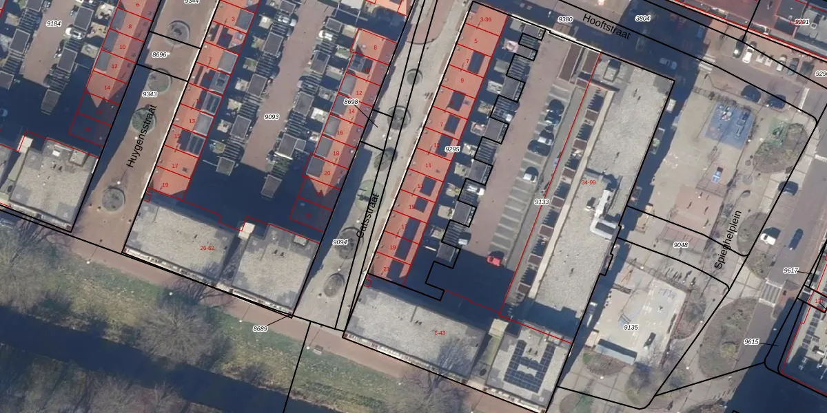 Het perceel waarop Catsstraat 21 staat heeft een oppervlakte van 1150 m². Dit is een zeer groot perceel. De perceeloppervlakte wordt geregistreerd door het Kadaster. Gedetailleerde informatie over de maten van dit perceel kunt u vinden in het rapport Kadastrale kaart met maatvoering van Catsstraat 21.