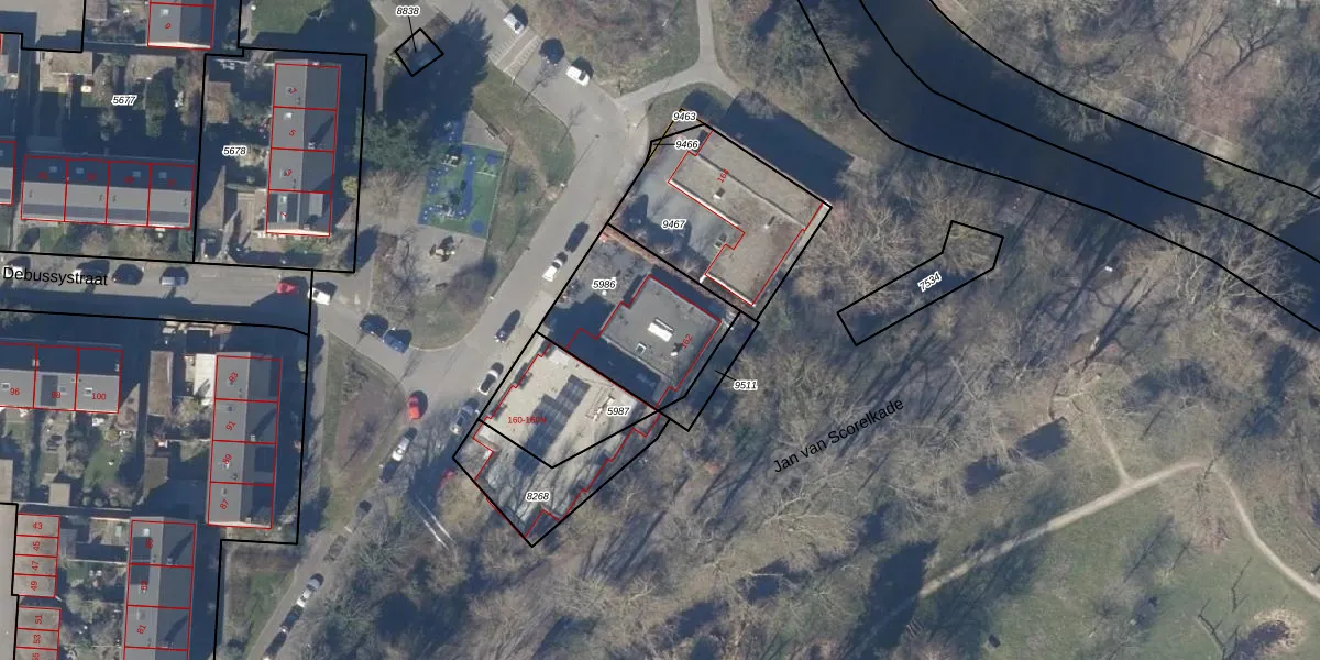 Gebruik de zoekbalk of klik op een perceel voor informatie over de adressen binnen dit perceel.
