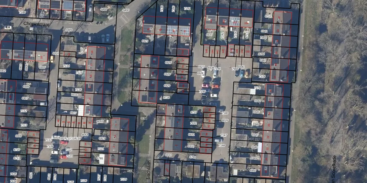 Gebruik de zoekbalk of klik op een perceel voor informatie over de adressen binnen dit perceel.